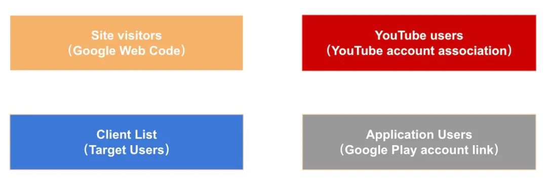 再营销受众列表由 Cookie 或移动广告 ID 组成,常见的受众列表有以下几种: