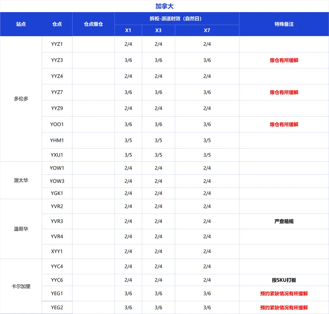 近期,加拿大部分仓库爆仓情况有所缓解,具体如下: