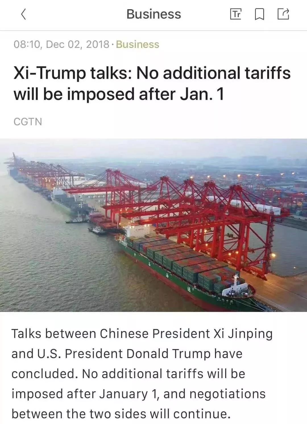 重磅消息!中美双方自2019年1月1日起将不再征收更多关税!