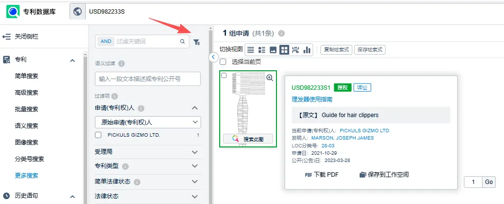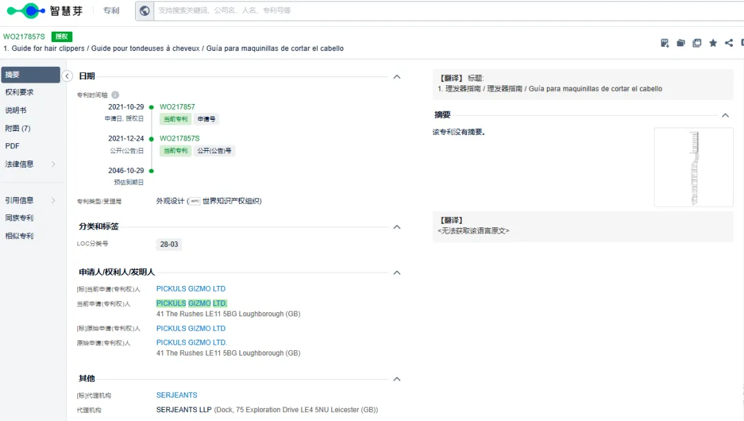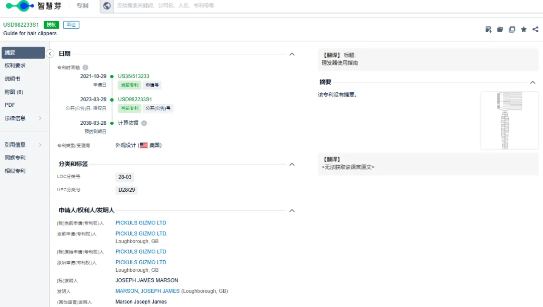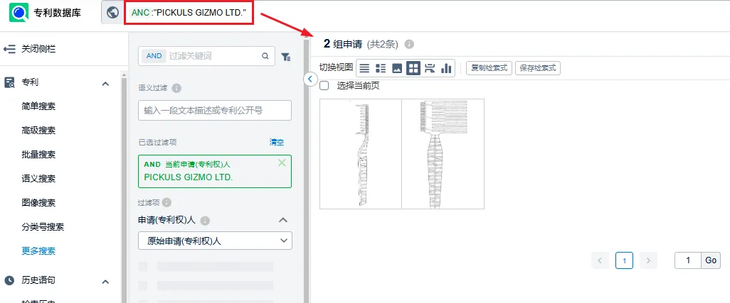 用权利人PICKULS GIZMO LTD.查询,可以看到能查到权利人名下专利产品详情。