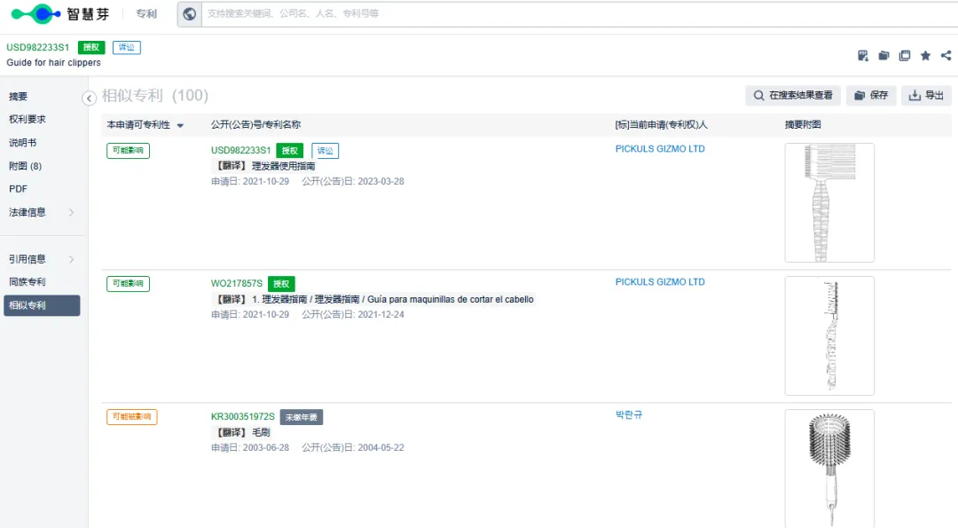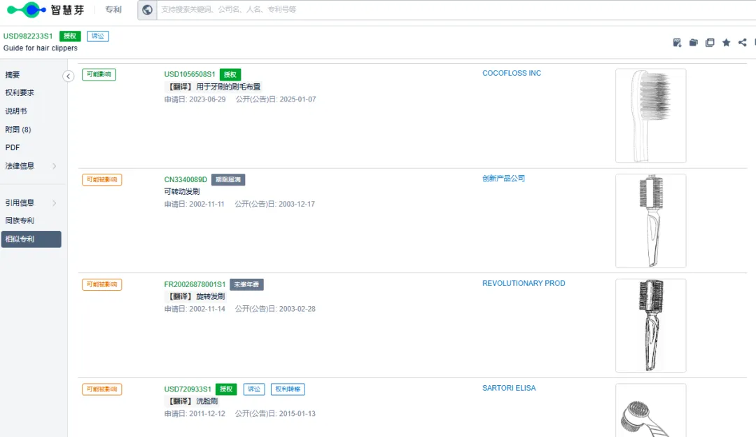 本次主要针对这款Blend Frend理发梳产品进行分析!该品牌权利人名下专利产品,给大家列举专利产品如下!
