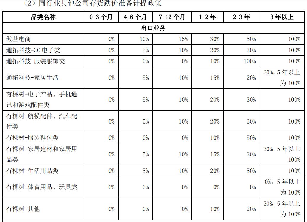 跨境通表示,经与同行业相比,跨境通与同行业企业均按存货的成本与可变现净值孰低计提存货跌价准备;具体而言,跨境通根据产品品类属性和其市场价格的波动情况确定了不同种类存货需计提跌价准备的库龄层次,根据库龄计提存货跌价准备的具体政策与同行业基本保持一致。