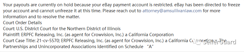 该案件目前只冻结了EBAY卖家,其他平台应该也会陆续冻结了。