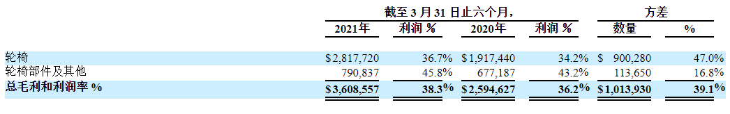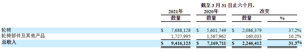 中进医疗的业务主要集中在轮椅上。截至 2021 年 3 月 31 日前6个月以及截至 2020 年 9 月 30 日和 2019 年财政年度,轮椅和轮椅部件的销售额分别占其收入的约 99.7%、98.9% 和 99.7%,生活辅助产品制氧机和沐浴机等的销售额分别占收入约 0.3%、1.1% 和 0.3%。