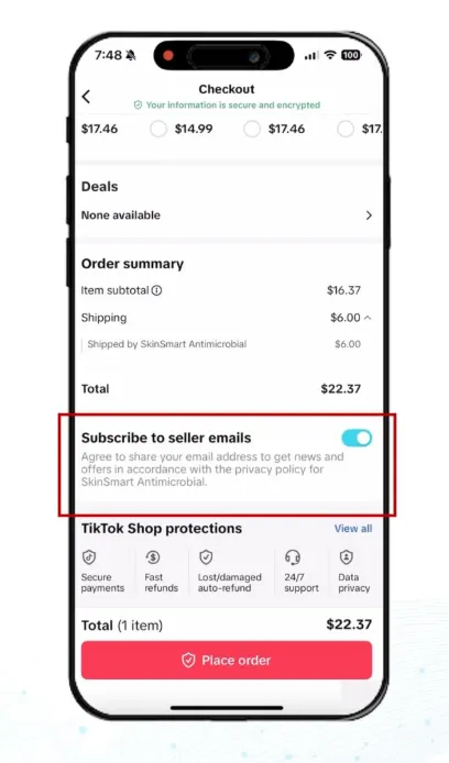 在购买页面前端,TikTok最近又推出一个新功能,顾虑客户订阅卖家的邮件。