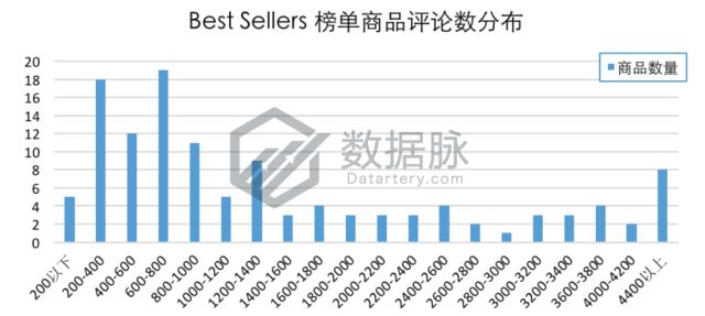 在上周登榜Office Products品类Best Sellers榜单的商品中,单个商品拥有的最大评论数为13645.0,最小评论数为14.0条,平均评论数1729.66条,评论平均星级4.37星。其中,评论数在 600至800条之间的商品居多,定价于这个价格段的上榜商品占了上榜商品的13.87%,另有13.14%的商品评论数在200至400条之间。此外骆探长 (shujumai.com)发现,在高评论数商品中,有8款上榜商品的评论数超过了4400条,占比5.84%。