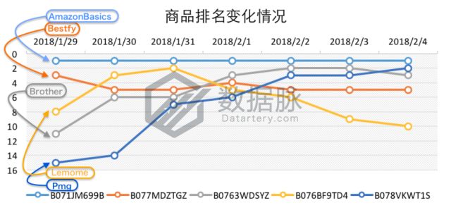 根据上周Hot New Releases榜单上各个品牌下商品的登榜次数,我们对登榜的品牌进行了排序,其中排名靠前的五个品牌如下所示: