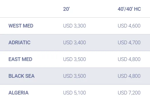 在欧地航线方面,达飞轮船(CMA CGM)宣布,将于2026年5月15日至31日期间上调亚洲至地中海及北非地区的FAK(Freight All Kinds)费率。此次调整覆盖西地中海、东地中海、亚得里亚海、黑海以及阿尔及利亚等多个目的地,适用于干箱、冷藏箱及超尺寸货物(OOG)。新报价已包含基础海运费及多项附加费用,但码头操作费及安全附加费仍需另行计算。
