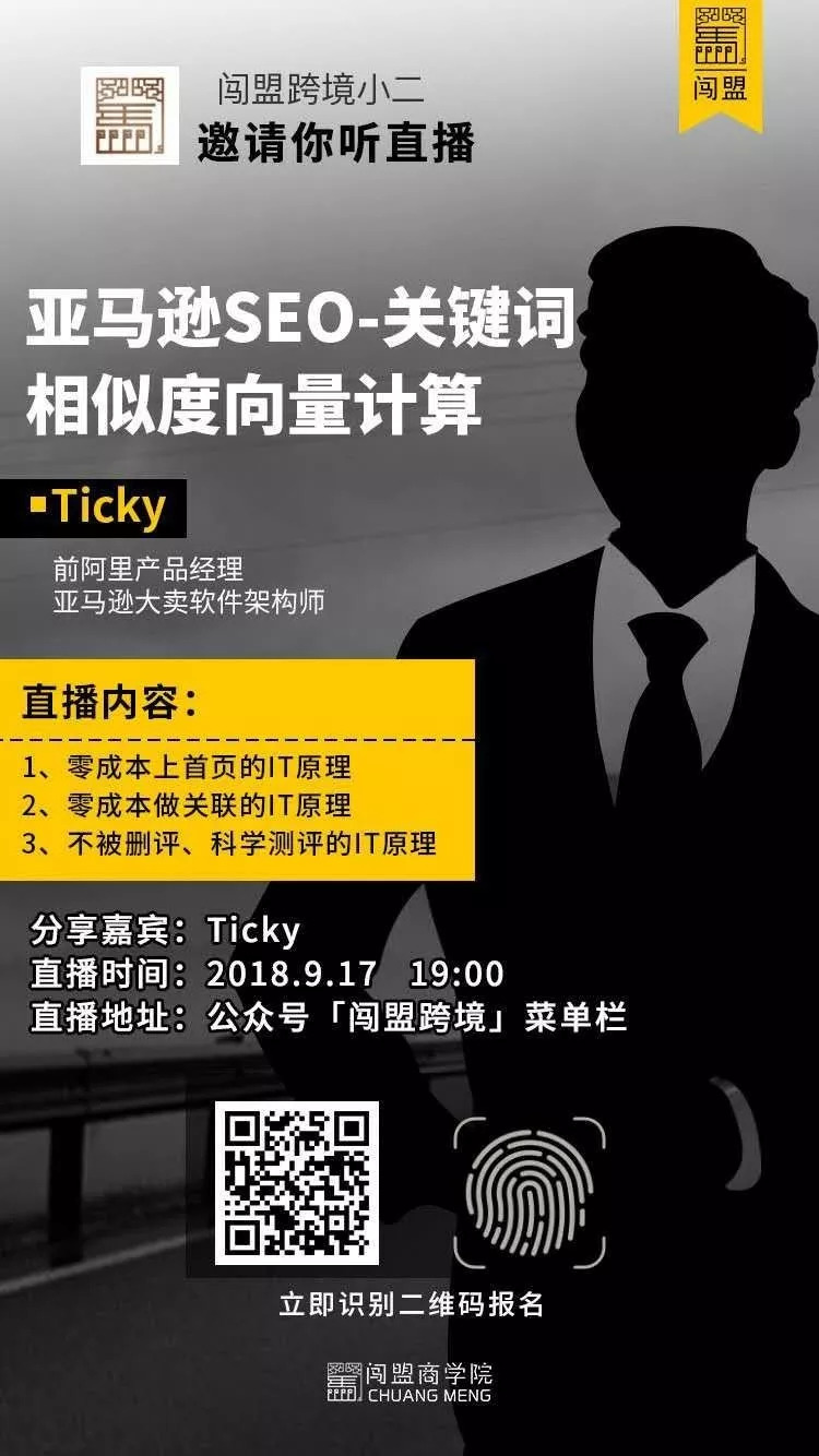 Ps:下周一晚19:00(也就是9月17号)锁定Ticky老师的直播课《亚马逊SEO-关键词相似度向量计算》,长按识别二维码立即报名!