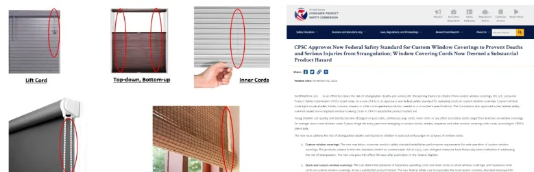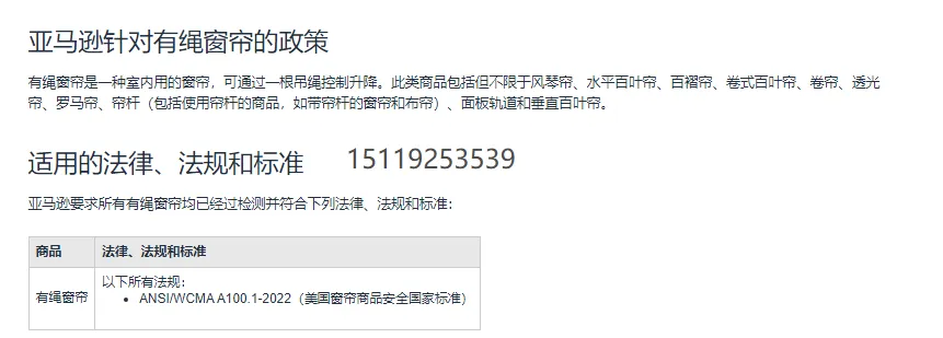 亚马逊美国ANSI /WCMA A100.1-2022、加拿大、澳大利亚消费品安全标准 - 带绳室内窗帘)法规