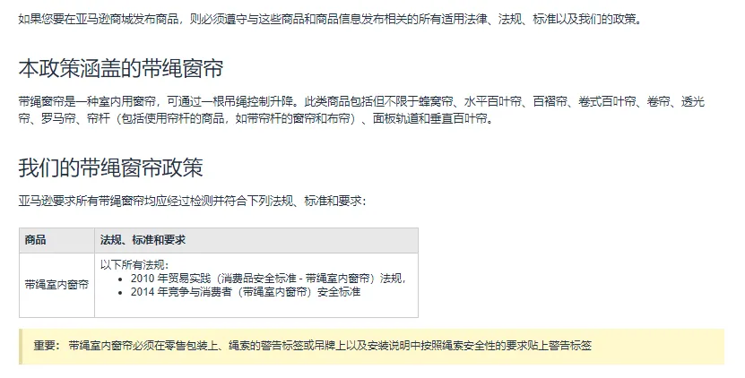 亚马逊要求所有带绳窗帘均应经过检测并符合下列法规、标准和要求: