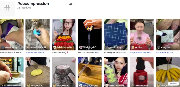 TikTok 上#decompression”(减压)话题的热度达257亿次观看,多个解压视频达上千万播放。多款解压玩具顺应话题趋势,火了一把。