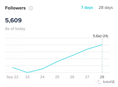 Followers也就是指关注该账号的粉丝数,该图表同样也是账号7天或28天期间每天用户关注账号的数据情况。