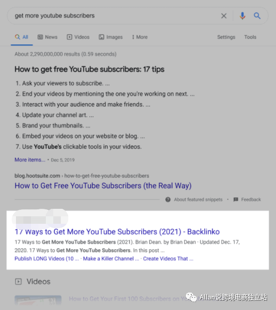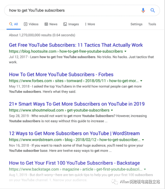 例如,当我分析“如何获得 YouTube 订阅者”的搜索引擎结果页面(“ SERP ”)时,我注意到它们大多是列表帖子。