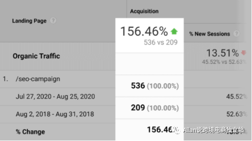 今天,该页面的自然流量比旧版本多 156.46%。