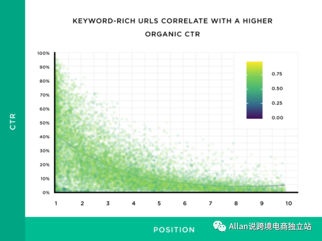 我们最有趣的发现之一是,与不包含与用户搜索匹配的关键字的 URL 相比,富含关键字的 URL 获得的点击次数增加了 45%。
