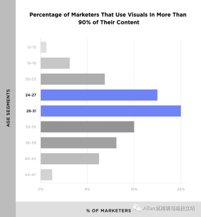 最近的一项调查发现,87.5% 的营销人员在他们的大部分内容营销工作中都使用了视觉内容。