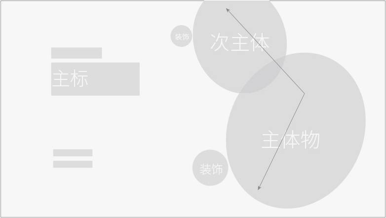 画面由主体物和次主体斜面对称而形成的杠杆关系,与主标题之间形成稳固的三角构造关系,此构图方式画面很饱满、稳固。适合两种产品或一个产品两面展示时使用。