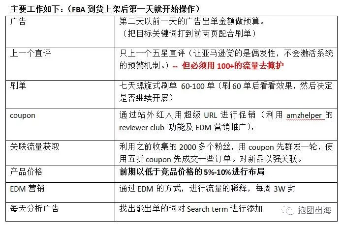 Listing上架之后,第一时间把数据分析好,然后写出漂亮的文案,同时,把A+页面给整出来,等FBA到货之后,第一时间去上A+。(有相关服务,提交上去3天内基本就会开通。自己去找,行情价差不多600块这样子)。
