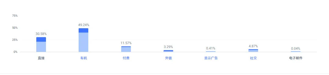 FORM Swim独立站月访问量约8.8万,其中自然搜索(30%)与直接访问(49%)占比较高。这说明用户已经带着明确需求进入,而不是被动刷到。