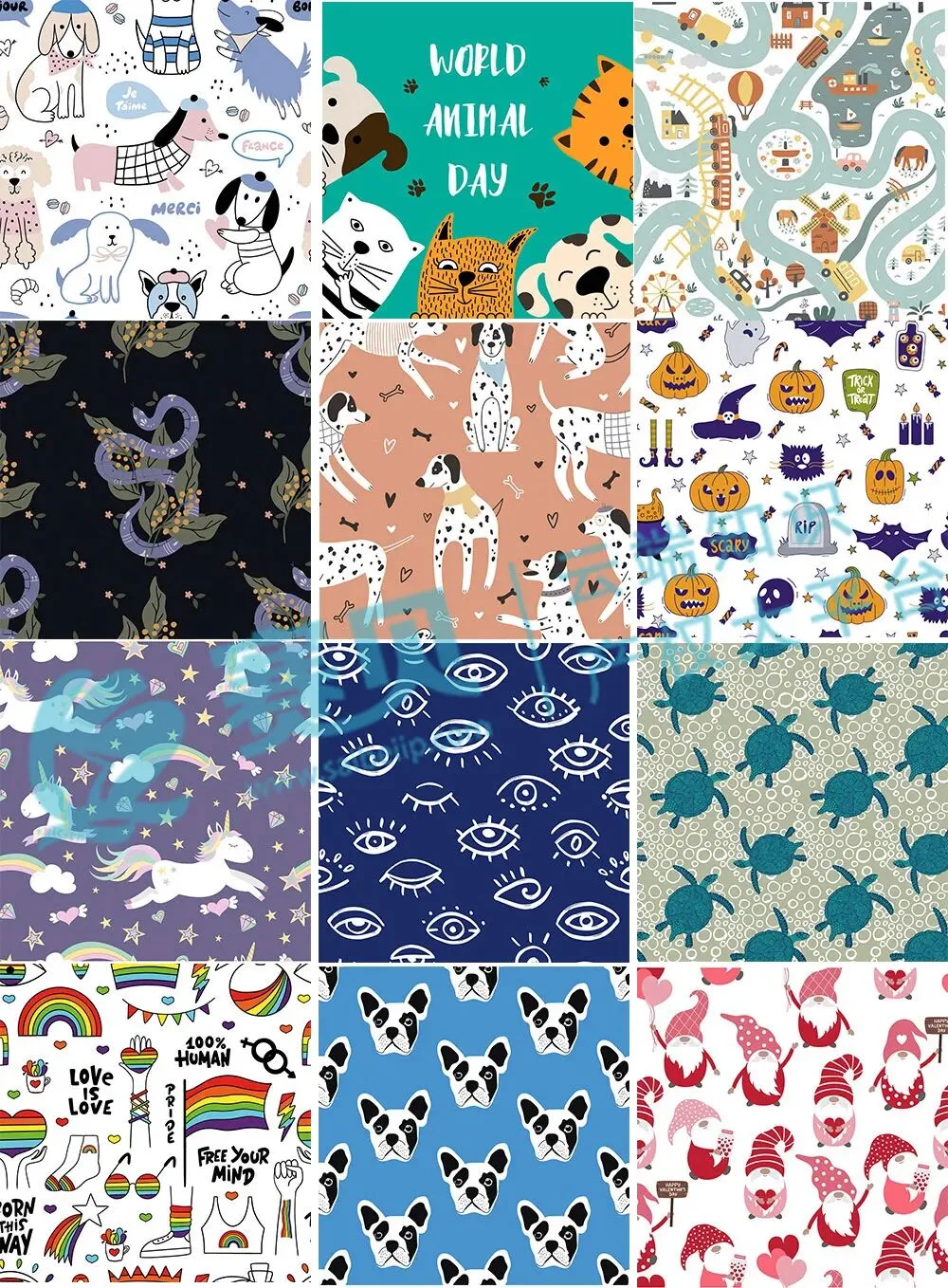 本次维权的是27项美国注册版权作品,覆盖宠物/节日/自然与动物纹理/奇幻/符号与装饰/童趣等主题, 堪称跨境印刷品类的高危图案清单。跨境卖家若未获得授权擅自使用,即便仅调整颜色或尺寸,只要整体视觉效果相近,就构成侵权。
