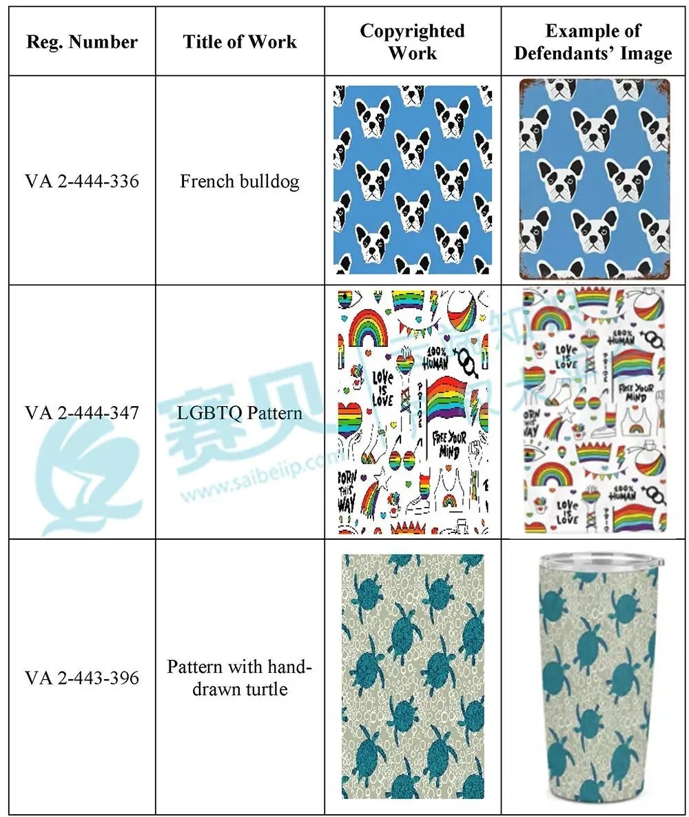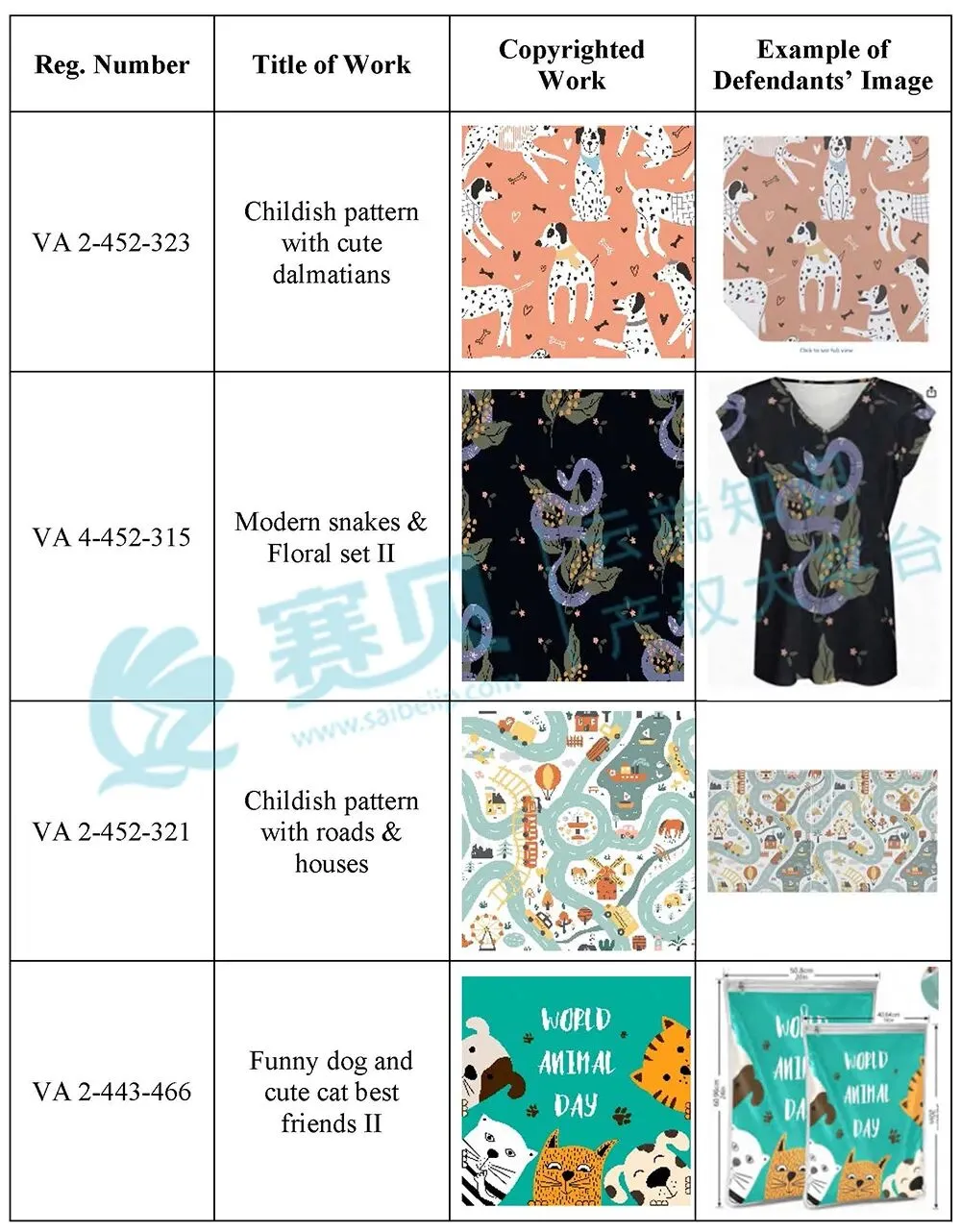 赛贝在自主研发的TRO案件查询系统获悉,案件25-cv-01843的版权侵权诉讼已经正式立案,Ference & Associates LLC 律所再次出手,代理乌克兰插画师Alona Savchuk 维权,涉及27项注册版权图案,包括了宠物/节日/自然与动物纹理/奇幻/符号与装饰/童趣等6大主题,亚马逊、沃尔玛、Temu 三大平台全中招,印刷品类卖家赶紧排查侵权风险!