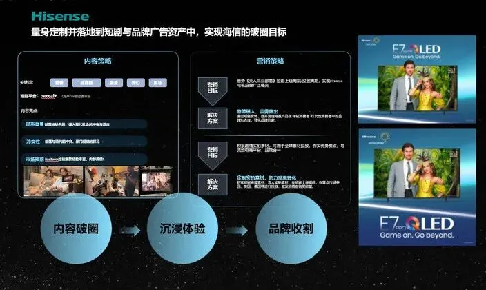 而在商业化层面上,苏星认为短剧的本质是“缩减版的中长剧”而非加长的短视频,这两者之间的核心区别在于IP潜力,而非一次性的观看付费(IAP/IAA)。从ReelForce的视角出发,短剧的商业化未来在于IP价值的全方位开发。一方面,短剧可以为出海品牌提供深度内容植入解决方案。通过剧情自然融入产品功能,实现“沉浸式种草”,其效果远超硬广。例如与海信电视的合作,通过高品质短剧触达高净值人群,实现品牌破圈与粉丝积累。另一方面,通过艺人经纪、系列剧开发、线上线下联动等方式,延长IP生命周期,构建多元收入体系。这要求企业必须尊重并融入当地影视工业体系,以合规、共赢的方式开展合作,培育健康的产业生态,而非以“流量掠夺者”的姿态透支市场信用。