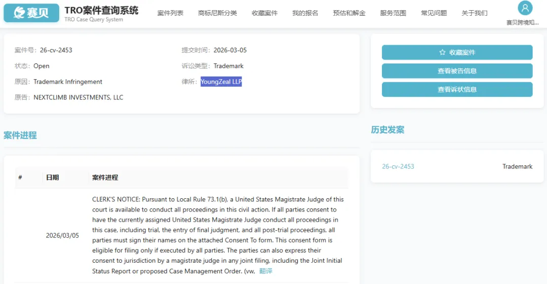 目前案件被告名单已经公开,案件进程还未有重大进展,卖家可以在赛贝TRO案件查询系统免费下载诉状和跟进案件最新进度!(公众号菜单及赛贝知识产权官网均有入口)