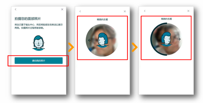 请您按照页面上的操作步骤提示拍摄您的面部照片,拍摄照片过程将被录制。