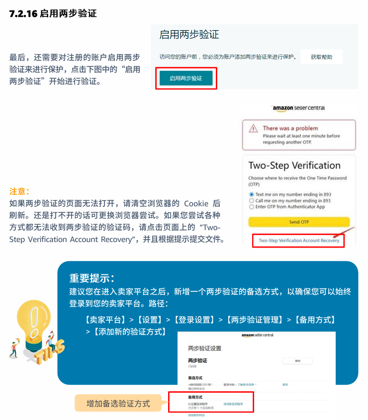 完成上述步骤后,恭喜您!账户注册已完成,请在两个工作日后使用您的注册邮箱、密码登入亚马逊卖家平台,即可看到身份验证的结果。可以登陆卖家平台即为审核通过注册成功,亚马逊也会用邮件通知您身份验证的结果。在完成注册后,请勿删除验证器 APP,也请确保二步验证手机号码保持正常可通话状态防止后续不能正常登录账号。