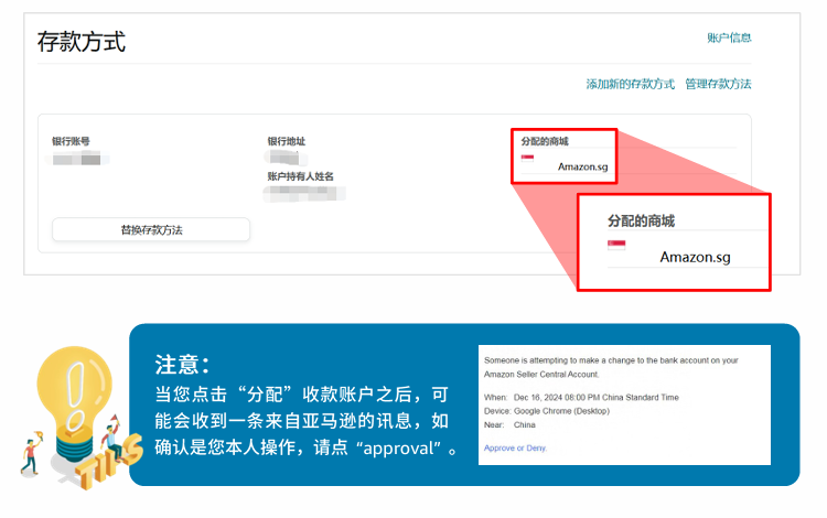 请务必保证存款方式信息的正确性,如果您的银行账户有问题,亚马逊就无法对您的账户进行结算。