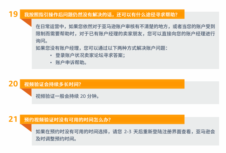 开始之前,中国大陆的卖家必须出示身份证件、营业执照以及在“录制面部视频 ”环节中拍摄的自拍照。在此过程中亚马逊不会向您提出任何现场问题。香港或台湾地区的卖家需出示身份证件和自拍照。