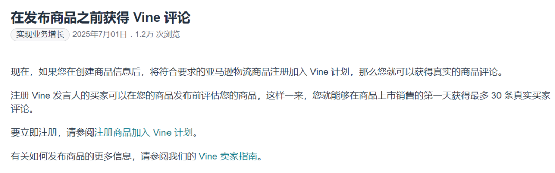 Vine预发布常见问题(以下源自亚马逊后台20250707)