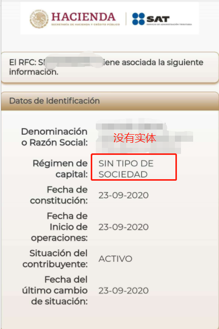 我们沙之星跨境为卖家申请的离境公司RFC税号,SIN TIPO DE SOCIENDAD,意思在墨西哥没有实体,Sin obligaciones fiscales, 没有税收义务。