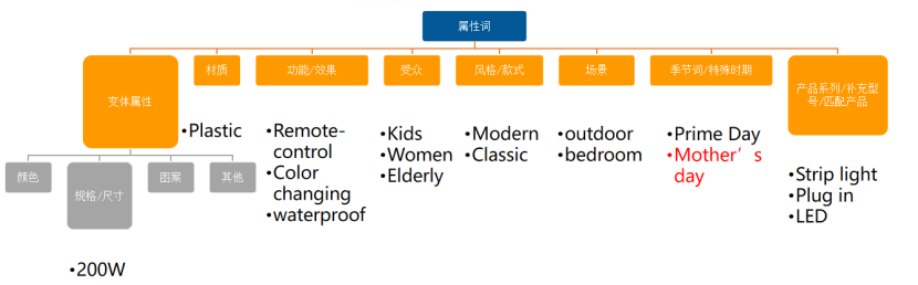 以灯具为例,我们来练习属性词归纳: