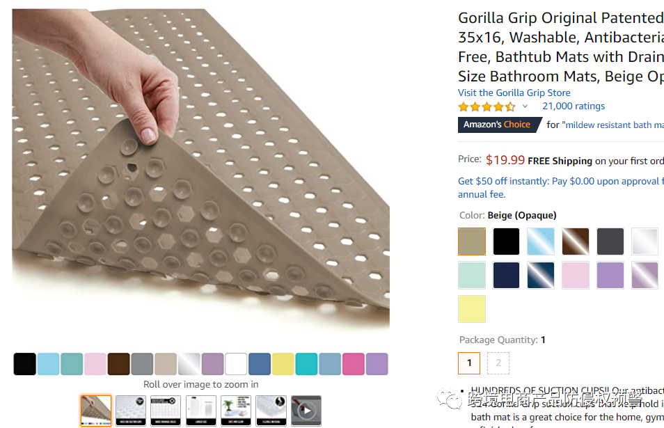 下面这款淋浴垫,目前它是亚马逊美国站的Amazon's Choice,留评21000,售价19.99美元: