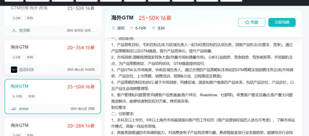 你看招聘网站上面Anker,DJI,INSTA360,Roborock, Ecovacs,华为,小米,OPPO等这些知名品牌都在招GTM