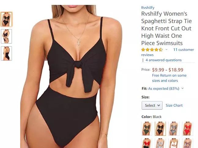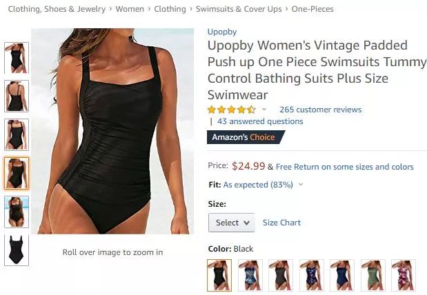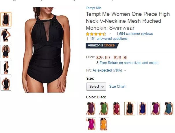 这件在亚马逊上斩获4.5星好评和1694条评论的一件式泳衣,以黑色褶皱的设计斩获了无数消费者的心。此外为了辐射更多的消费者,这款泳衣还推出了其余八个颜色,匹配不同风格的需求。