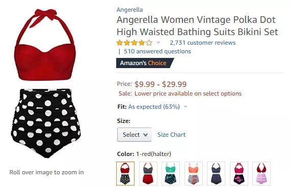 这件斩获2731条review的热门泳衣凭借复古酒红和波尔卡波点成为了复古风人士的心头好,此外其加大码的产品设计也在肥胖人士中圈粉无数。