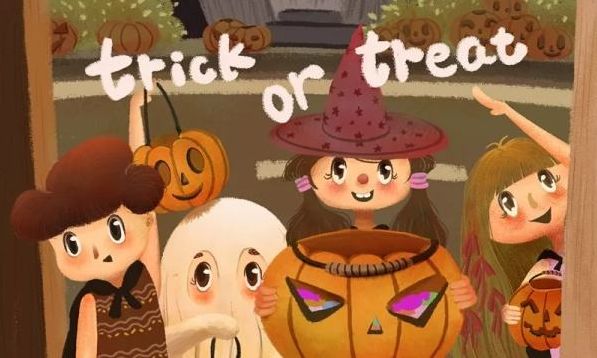 万圣节前夜这一晚,小孩会挨家挨户按邻居的门铃,大叫"Trick or Treat!"讨要糖果或礼物。
