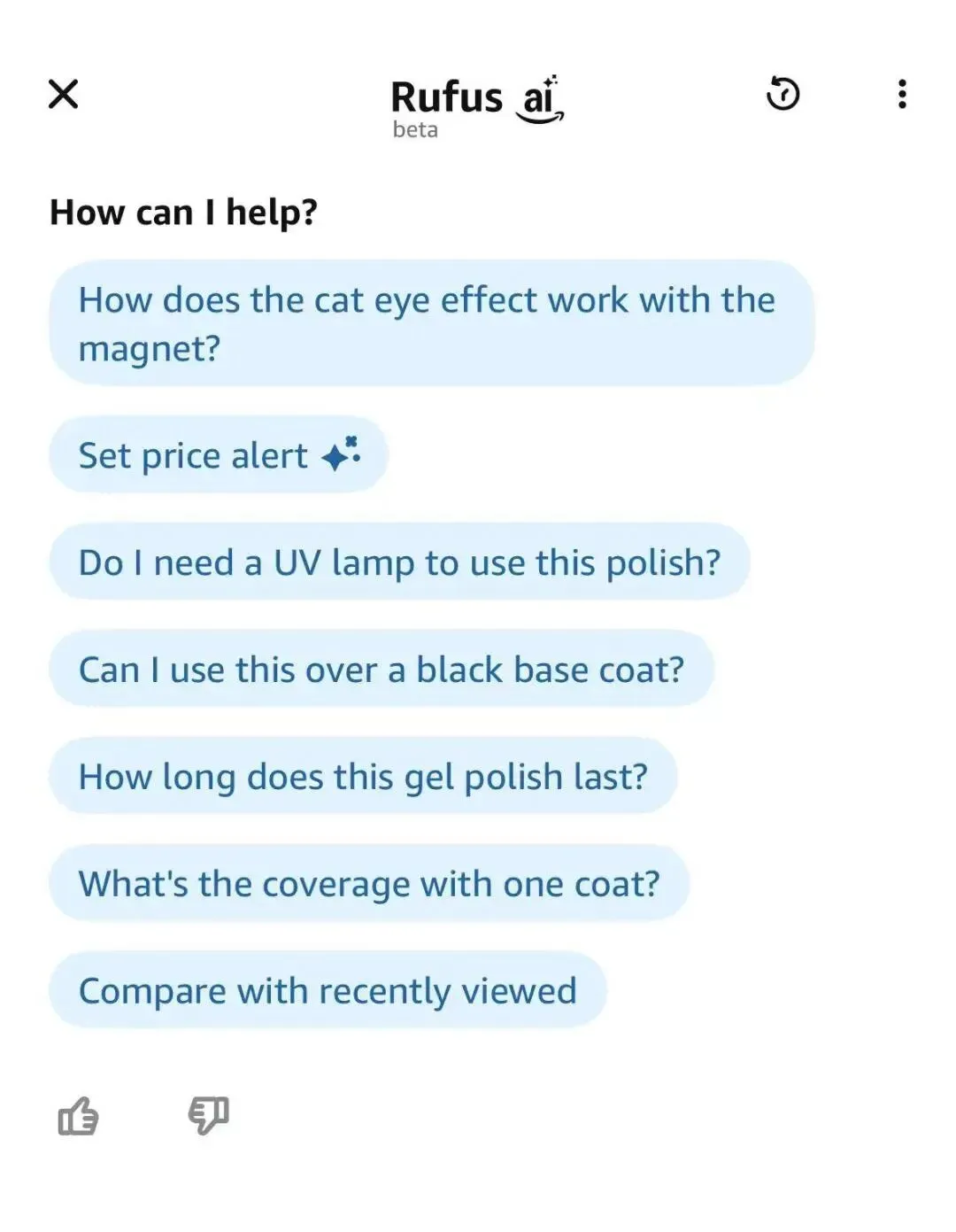 而 Rufus 不一样,它能真正听懂人话,做深度语义理解和用户意图匹配,买家会直接说 “适合跑步、防汗、续航超过 8 小时的无线耳机” 这种带场景的需求,平台更看重你有没有写清楚场景、信息够不够完整,流量也按照问题匹配度来分配,优质展示位更少、也更值钱。