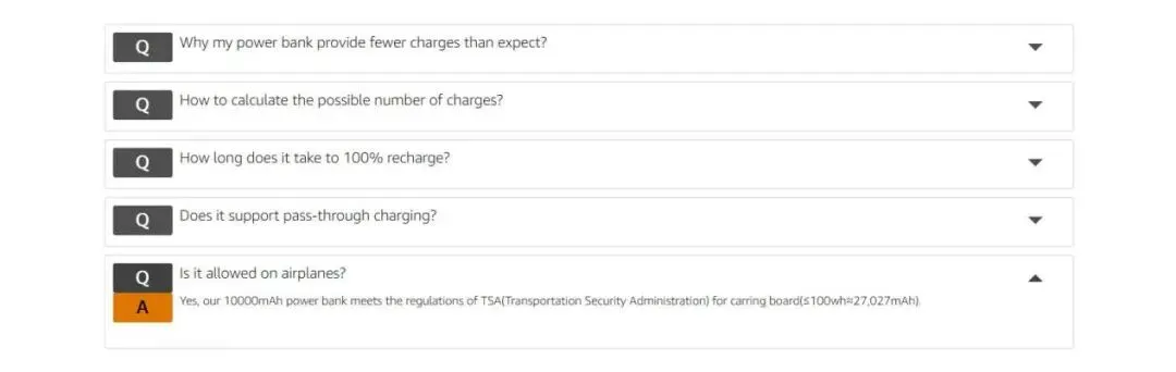 就拿充电宝来举例子,你一定要在 Q&A 里把这些高频问题提前放上去:能不能带上飞机、给手机能充几次、支不支持快充,答案要写得清楚准确,并且和 Listing 里的信息保持一致,别前后矛盾。