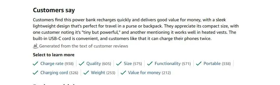 Rufus 会直接抓取评论里的真实内容,来判断你的产品到底好不好。所以别只想着让买家留一句简单好评,尽量引导他们写清楚使用场景、真实感受和实际解决的问题,比如上班通勤用、旅行带着方便、噪音小、戴着舒服这类具体描述,AI 只要捕捉到这些信息,就会更愿意把你的产品推荐给买家。