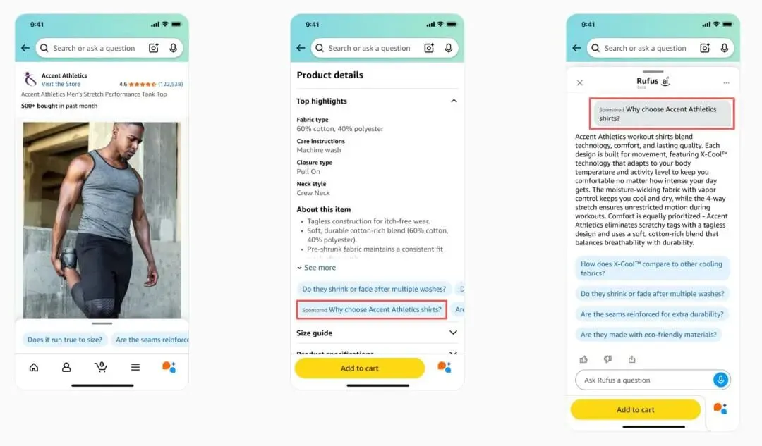 买家一问Rufus,你的产品就可能出现在对话里,带Sponsored标。