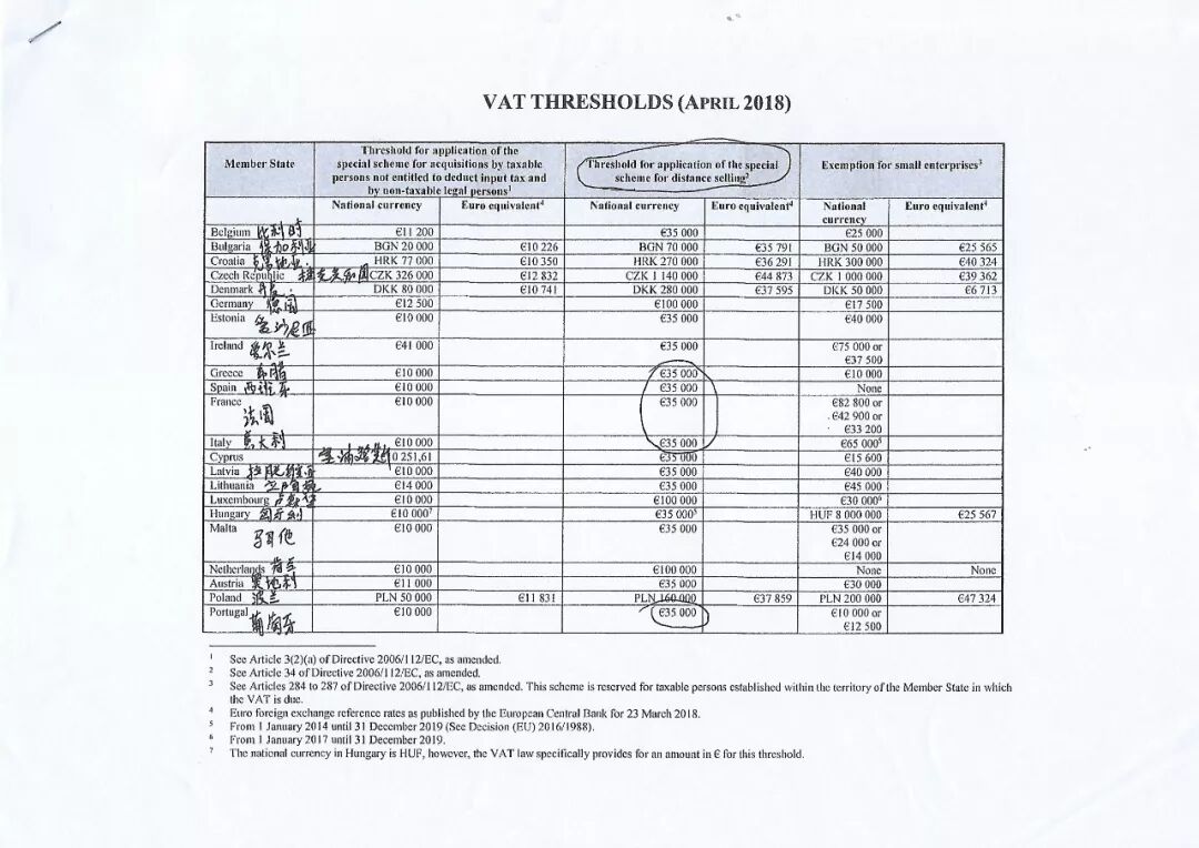 根据欧洲的远程销售法(Distance Selling Regulation),从英国 FBA 发货,只要不超过临界值,都可以用英国 VAT 申报,德国累积 12 个月销售额不超过 100,000 欧元。法国和西班牙,意大利不超过 35,000 欧元是可以一起在英国申报的,如果超过以上的数据就要在相应国家注册相应国家的增值税号和申报。