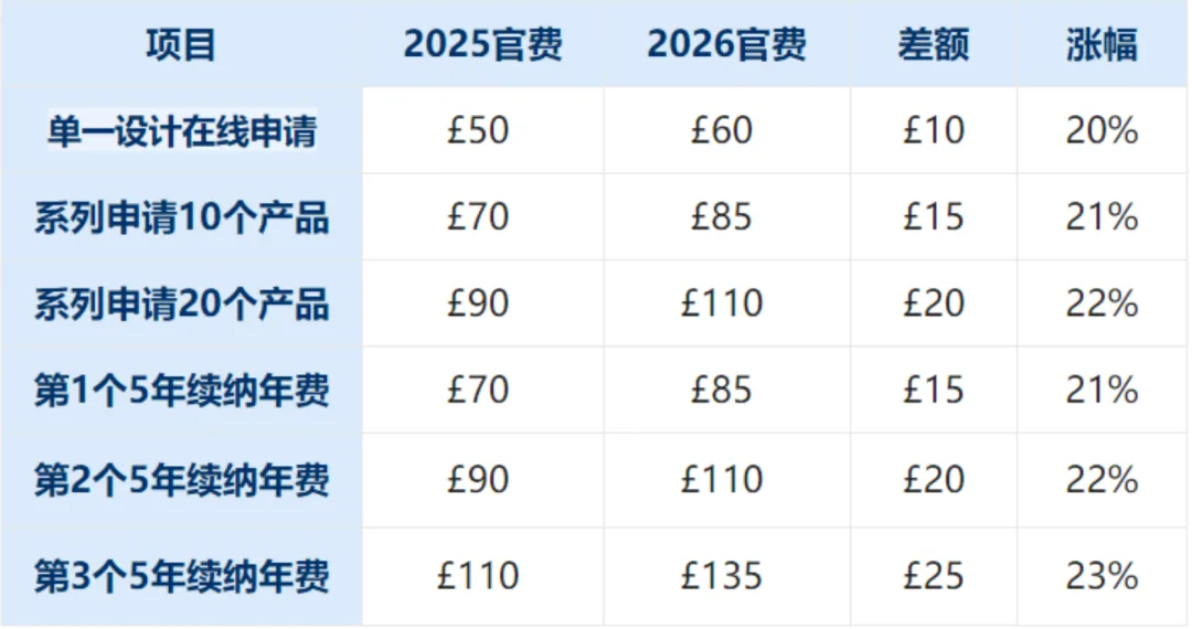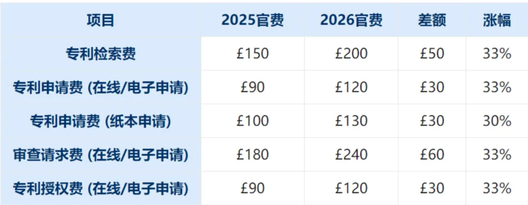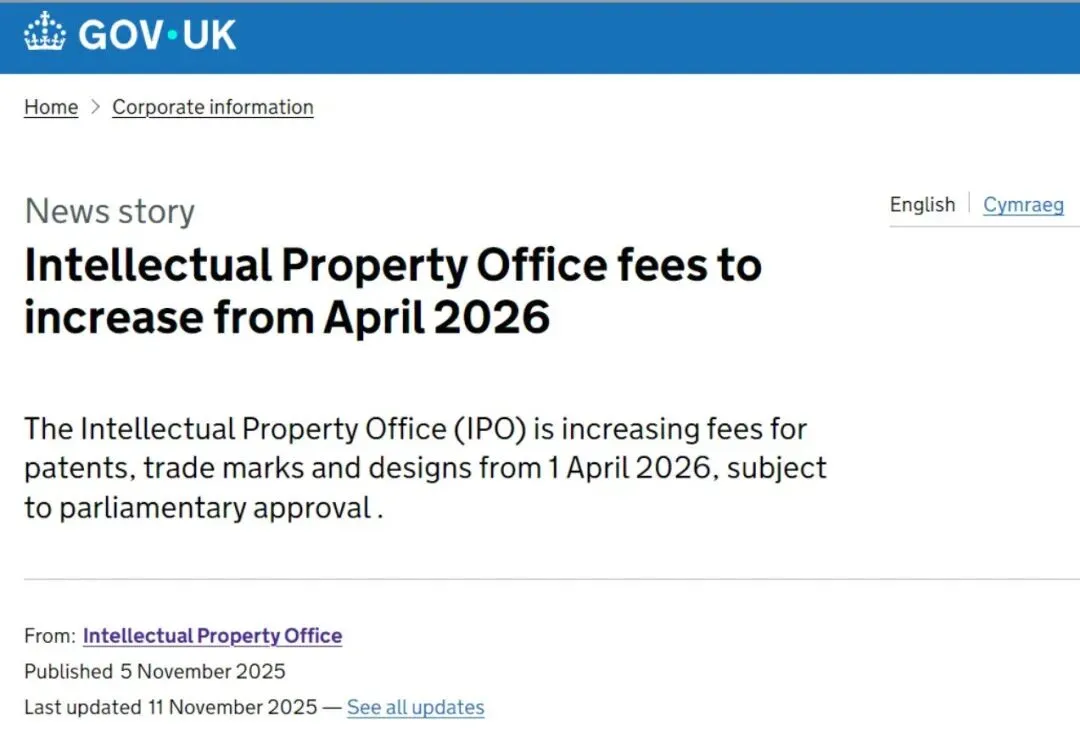 网址:https://www.gov.uk/government/news/intellectual-property-office-fees-to-increase-from-april-2026
