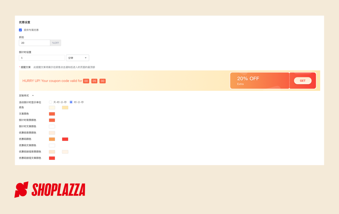「Web Push」功能的每款模板均可定制化,对内容、跳转链接、发送延迟时间等维度进行定制并实时预览和测试,其中,优惠设置是吸引用户点击最重要的一环。「Web Push」大部分模板支持自定义链接专属优惠,结合通知文案吸引用户点击跳转,进入后便可实现专属优惠展示,且营销 Banner 支持直接修改,一条龙实现随时随地发送专属优惠码。
