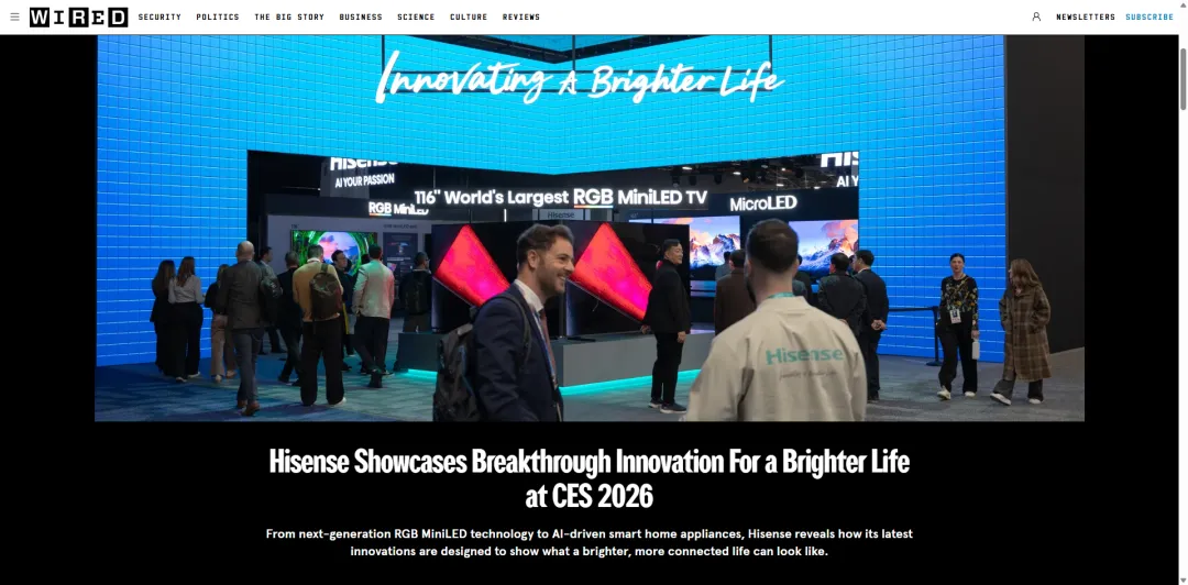 一场成功的展会营销,从来不是“昙花一现”,海信早就做好了长效布局——展会结束后,直接联动全球顶级科技媒体WIRED,发布深度报道,让品牌声量持续发酵。