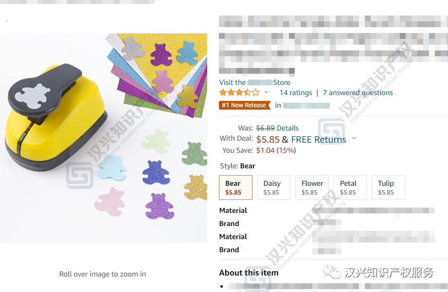 美亚新品榜第一儿童压花器美国外观专利防侵权预警