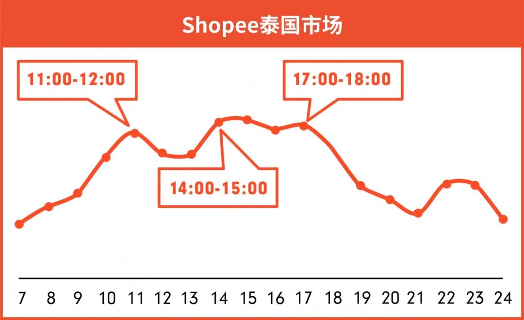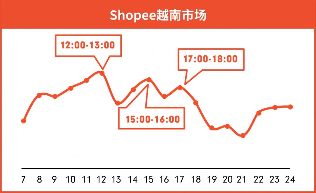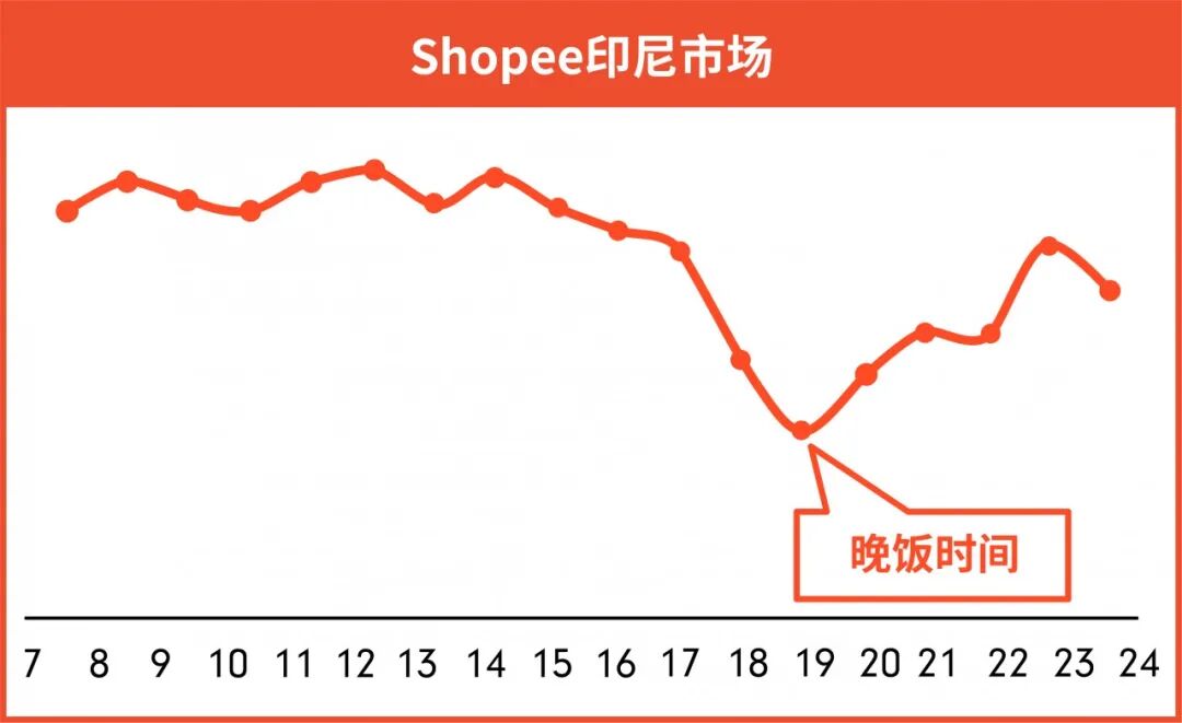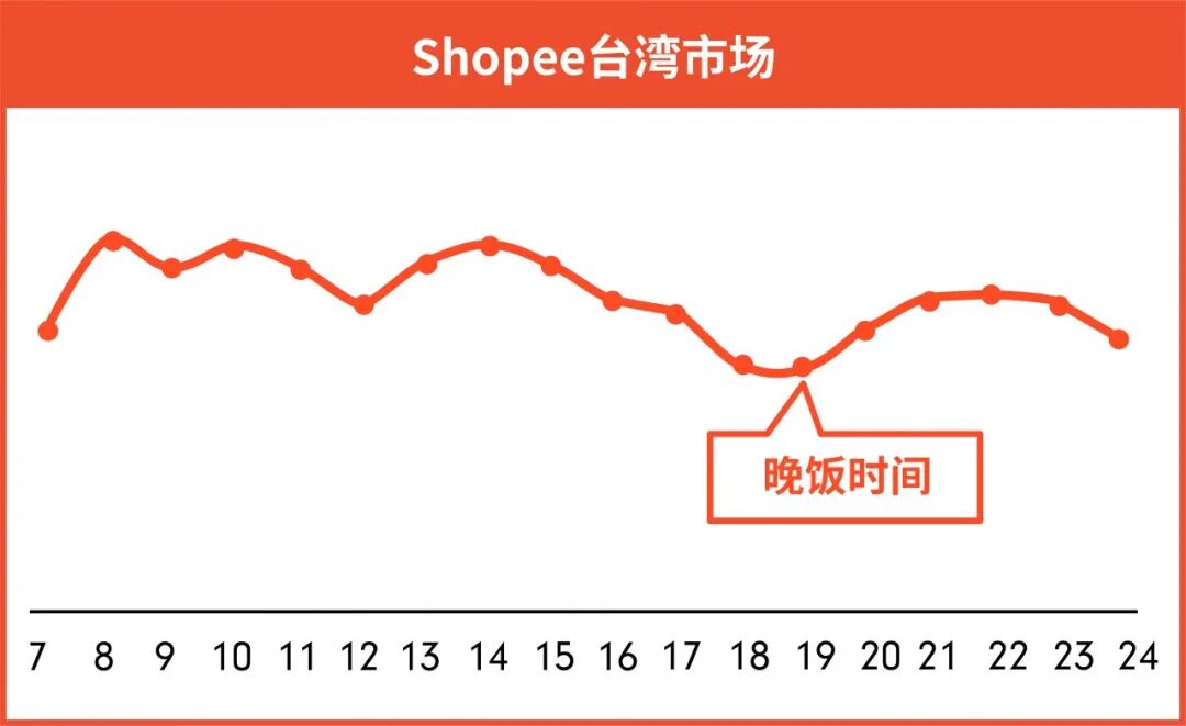 印尼、台湾市场除晚饭时间外,每天不同的时间上新均可获得较好的流量曝光。即使在夜间22-24点,产品曝光依然能达到早午间水平。